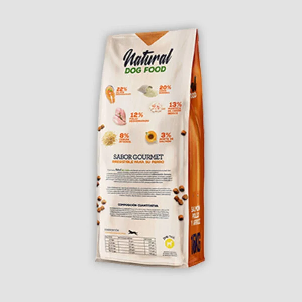 Su nueva fórmula, mejorada por nuestro equipo veterinario, incluye pescados como el salmón y el atún, con los que tu perro recibe un alimento bajo en grasa que controla su peso y regula el sistema inmunitario. Estos pescados, ricos en aceites Omega 3 y Omega 6 y en DHA, ayudan a reducir la inflamación en articulaciones y las enfermedades inflamatorias de intestinos, además de mejorar la salud de la piel y el pelo junto a un correcto desarrollo. Natural Dog Food Salmon & Atun es un pienso saciante y delicioso, que cuida la masa muscular y favorece un buen estado anímico para tu perro